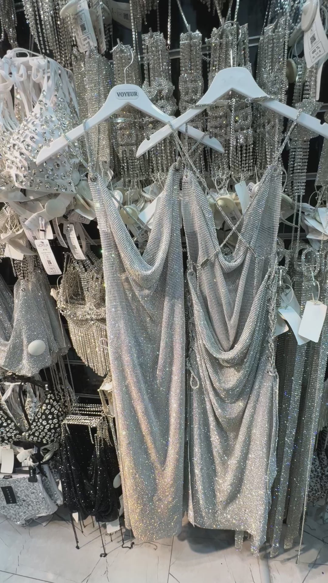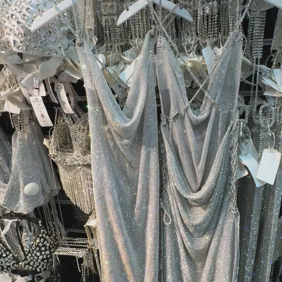 Kristal Taşlı Bağlamalı Degaje Elbise