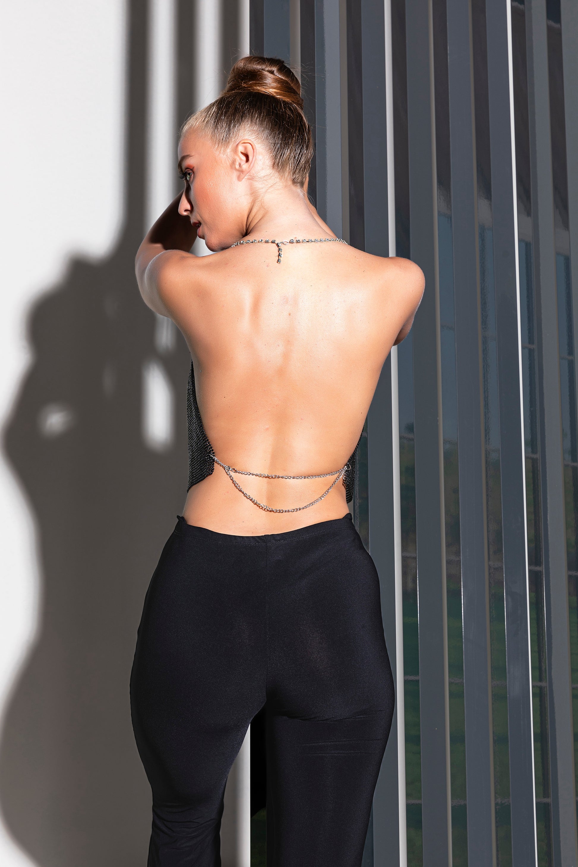 Beyaz ve Siyah Taşlı Mesh Bluz